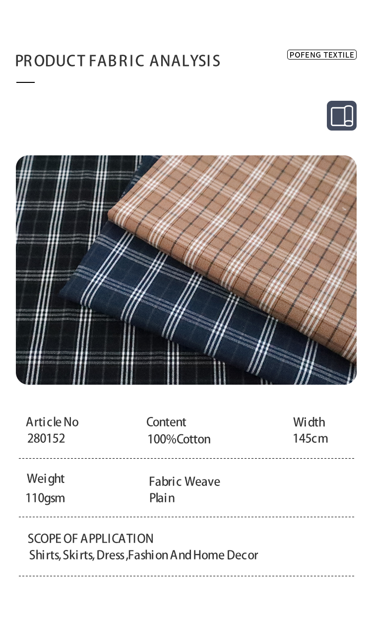 Cotton Yarn-Dyed 110gsm Tartan Check Plaid Fabric for Boys Girls Children’s Clothing Men’s Women’s Shirts Dress Pants