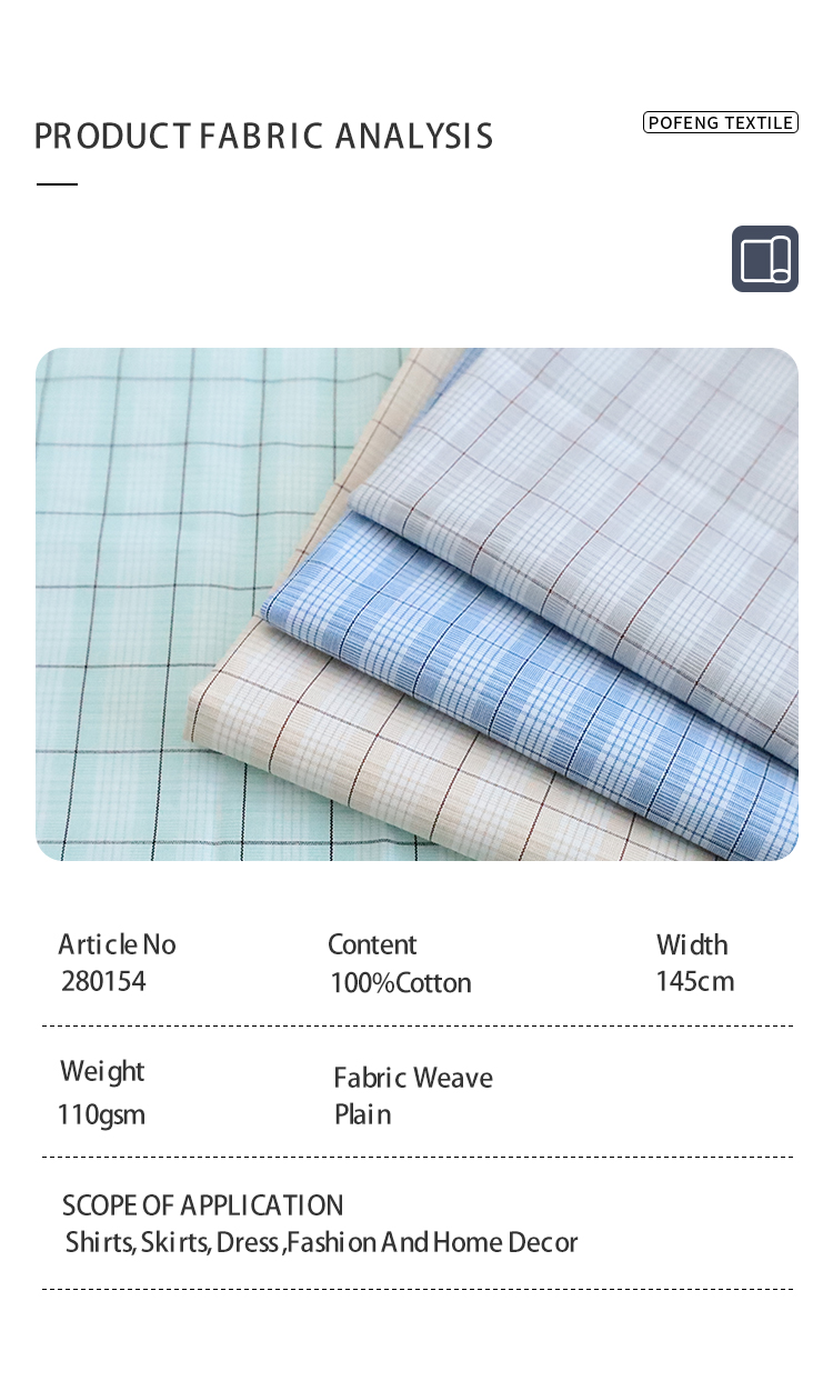 Cotton Yarn-Dyed 110gsm Tartan Check Plaid Fabric for Boys Girls Children’s Clothing Men’s Women’s Shirts Dress Pants