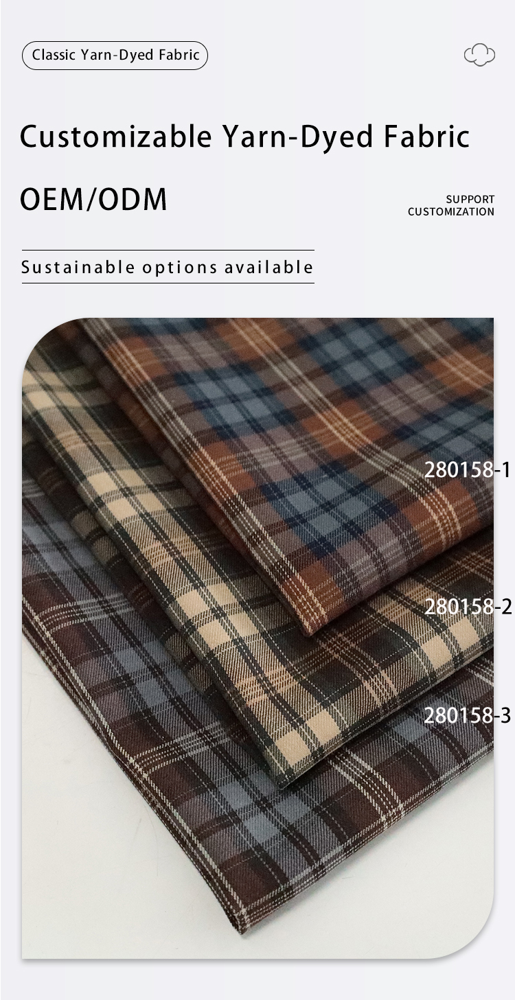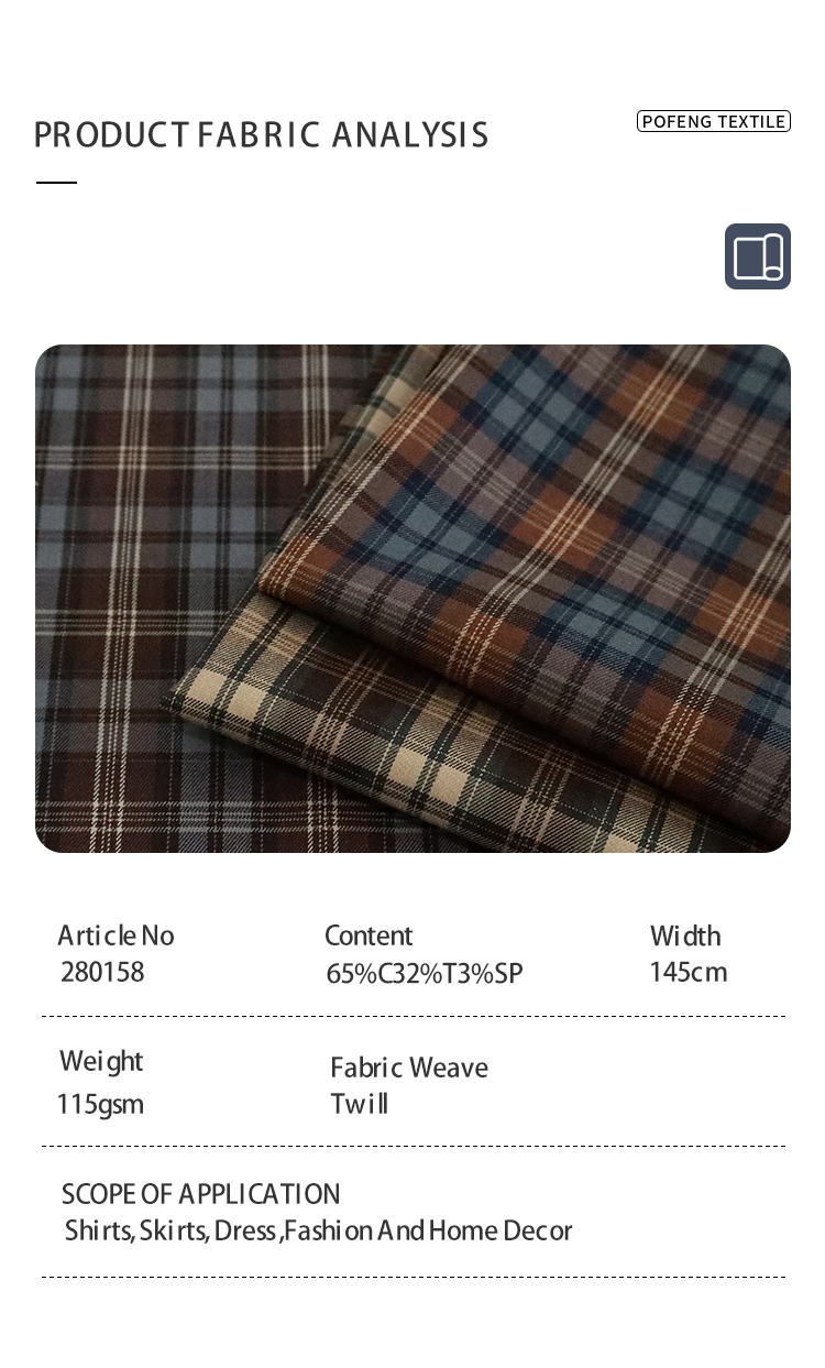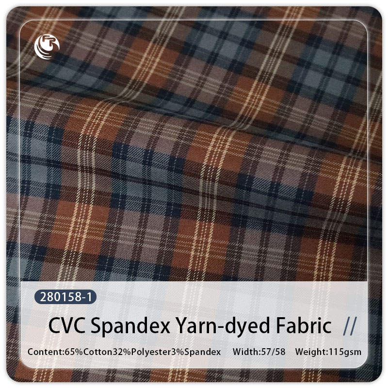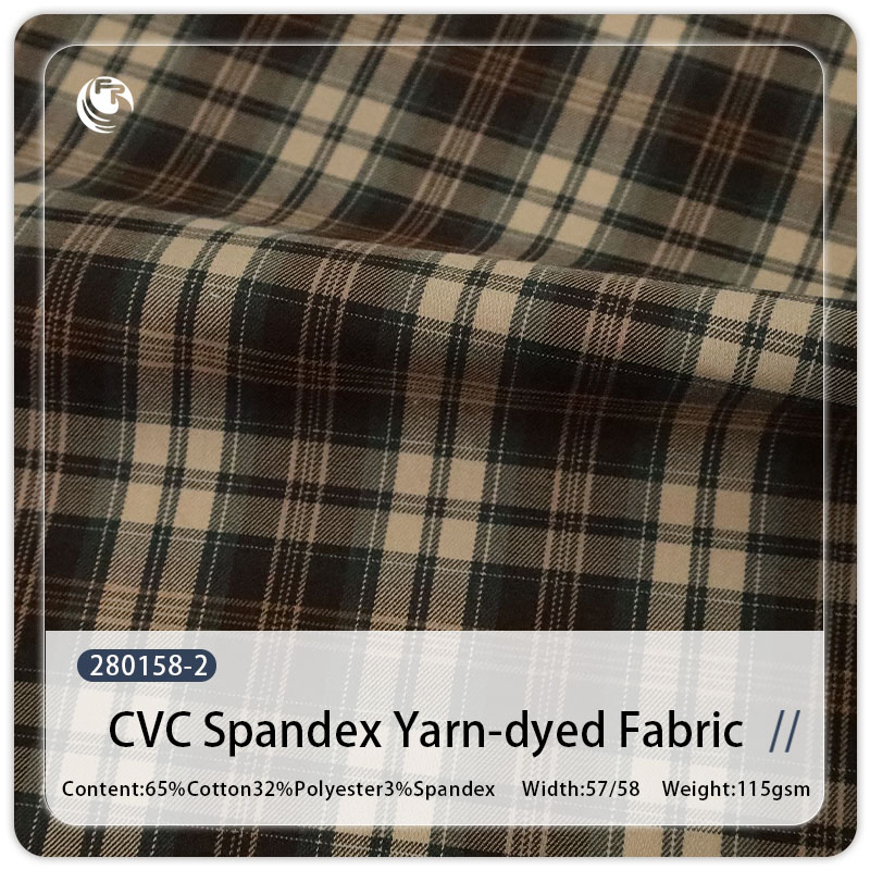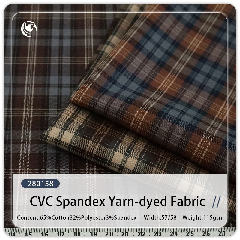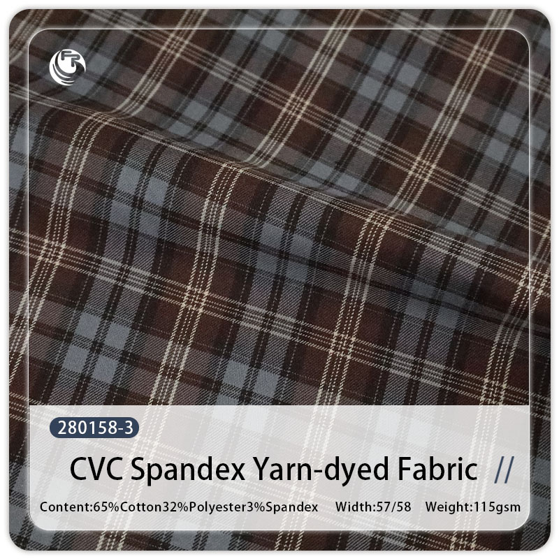 Stretch CVC Checkered Woven Fabric 65% Cotton 32% Polyester 3%Spandex With Spandex for Women’s Shirt Dress & Overshirt