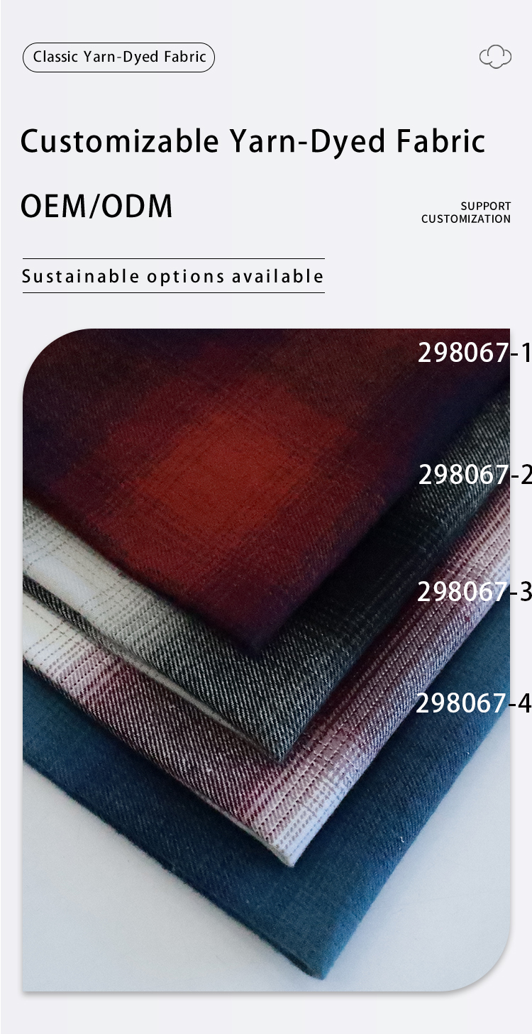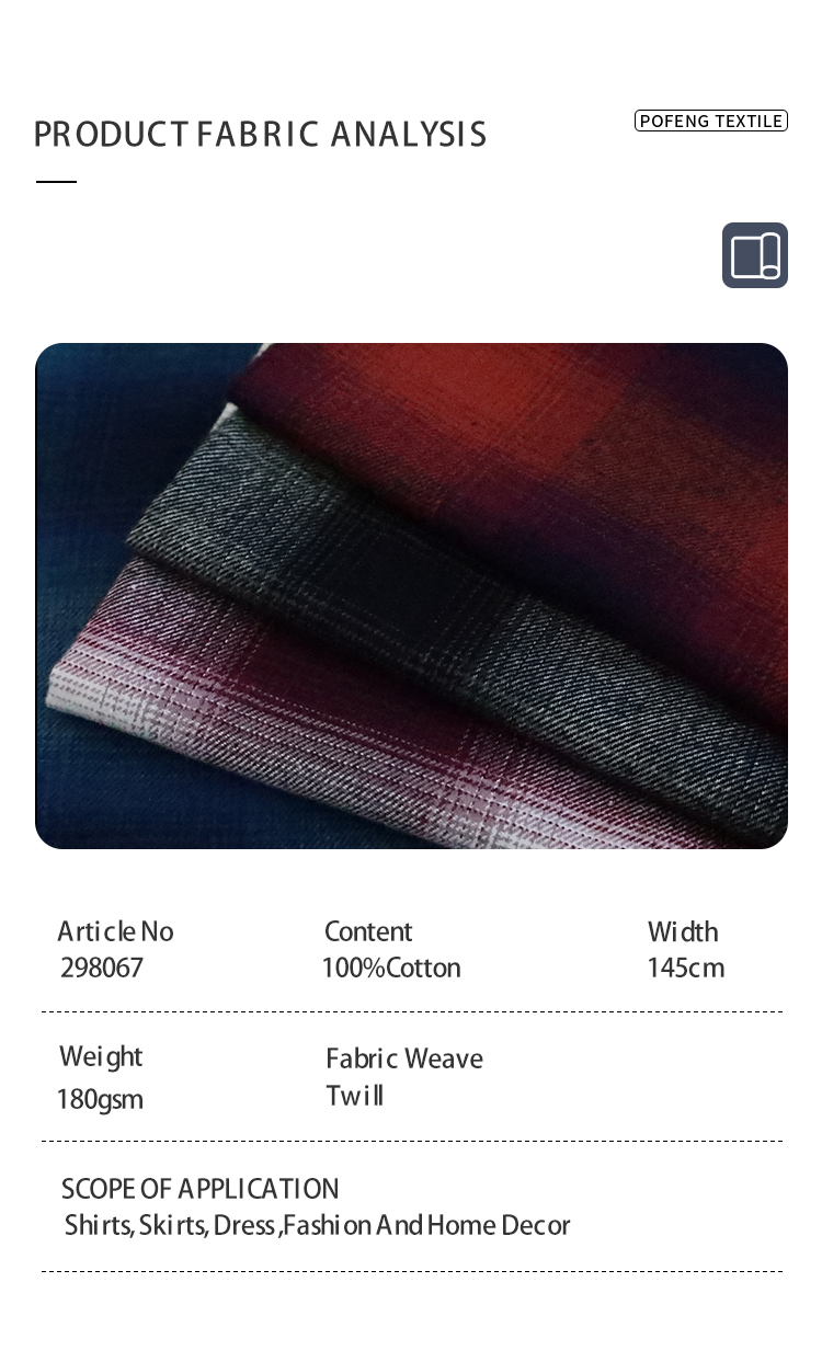 100% Cotton Stock Woven Check Plaid Fabric Breathable Yarn Dyed Dobby Versatile for Girls/Boys Shirt Dress Home Twill Plain