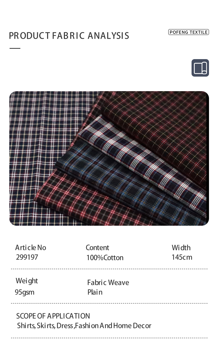 Cotton Yarn-Dyed 95gsm Tartan Check Plaid Fabric for Boys Girls Children’s Clothing Men’s Women’s Shirts Dress Pants