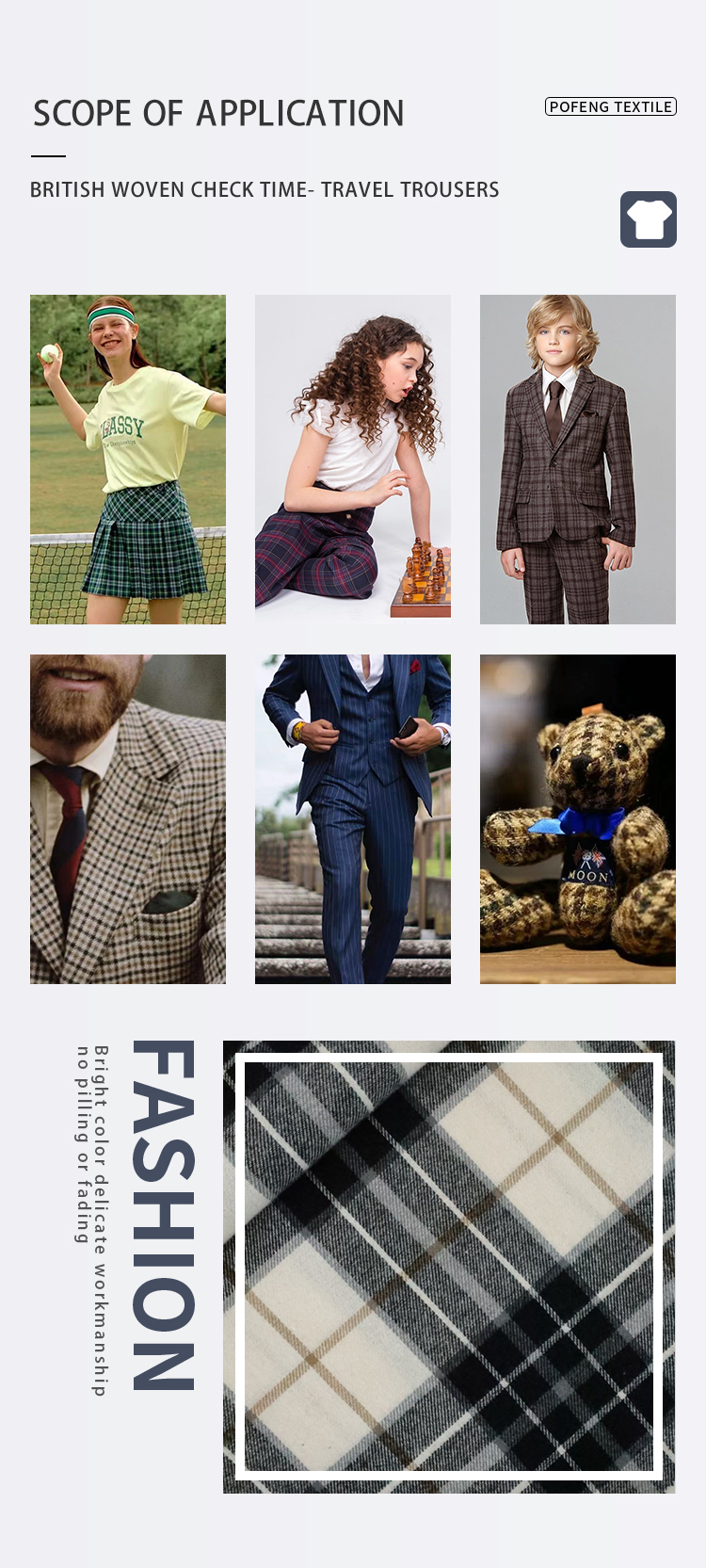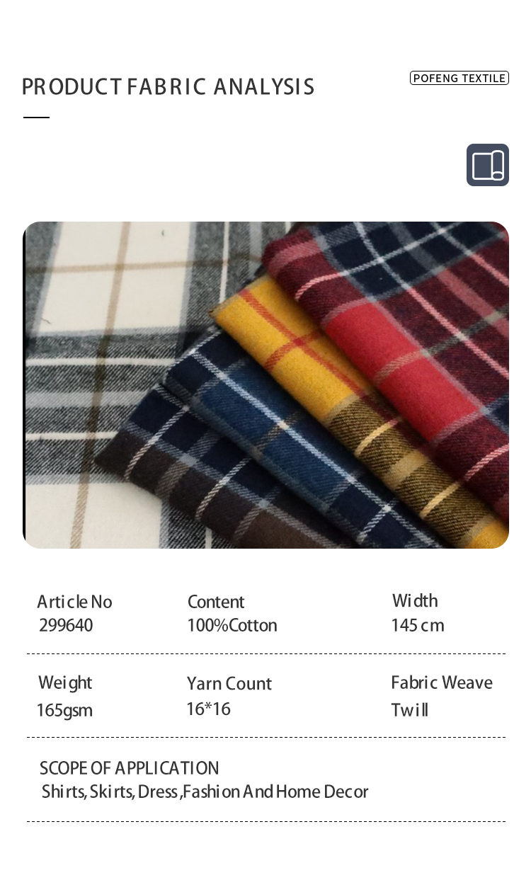 100% Cotton Tartan Check Plaid Fabric 16S 165gsm Woven Shirt Dress for Women Children Soft Breathable Yarn Dyed Tartan Check
