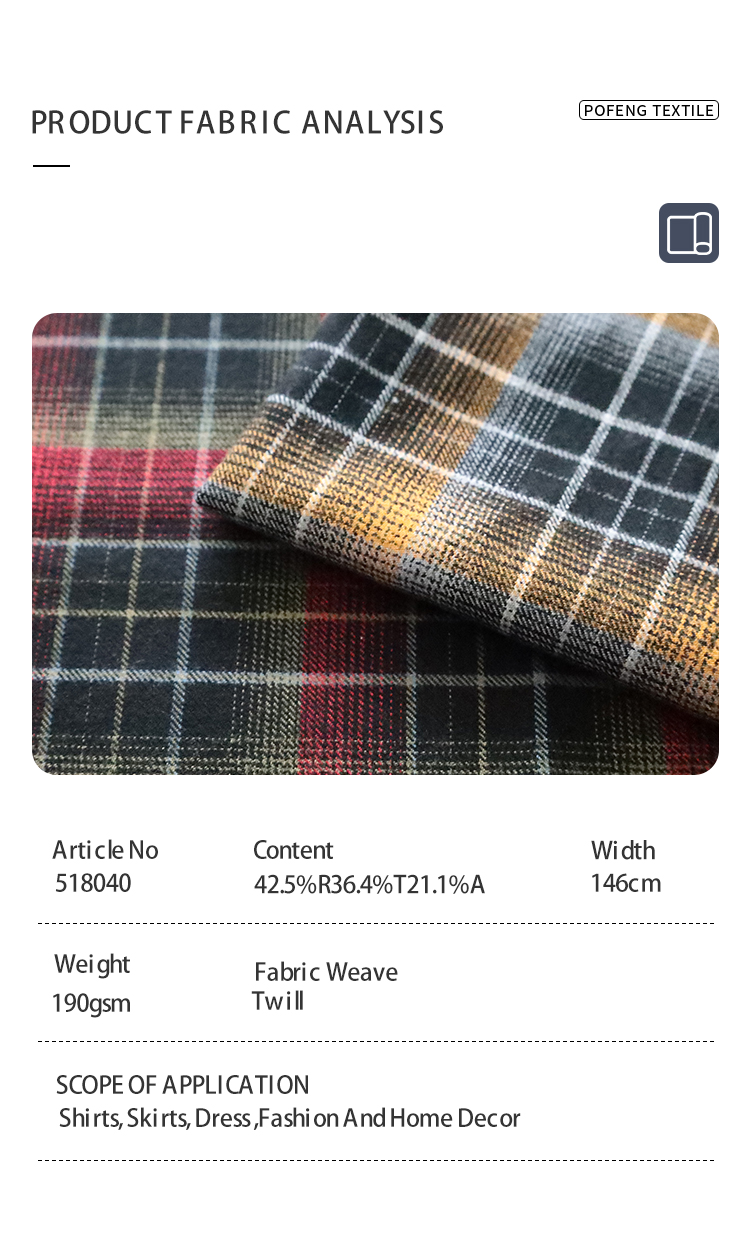 Wholesale 190GSM Brushed Plaid Fabric – 42% Viscose 36% Polyester 21% Acrylic Warm Soft Checkered Material for Shirt Dress Coat