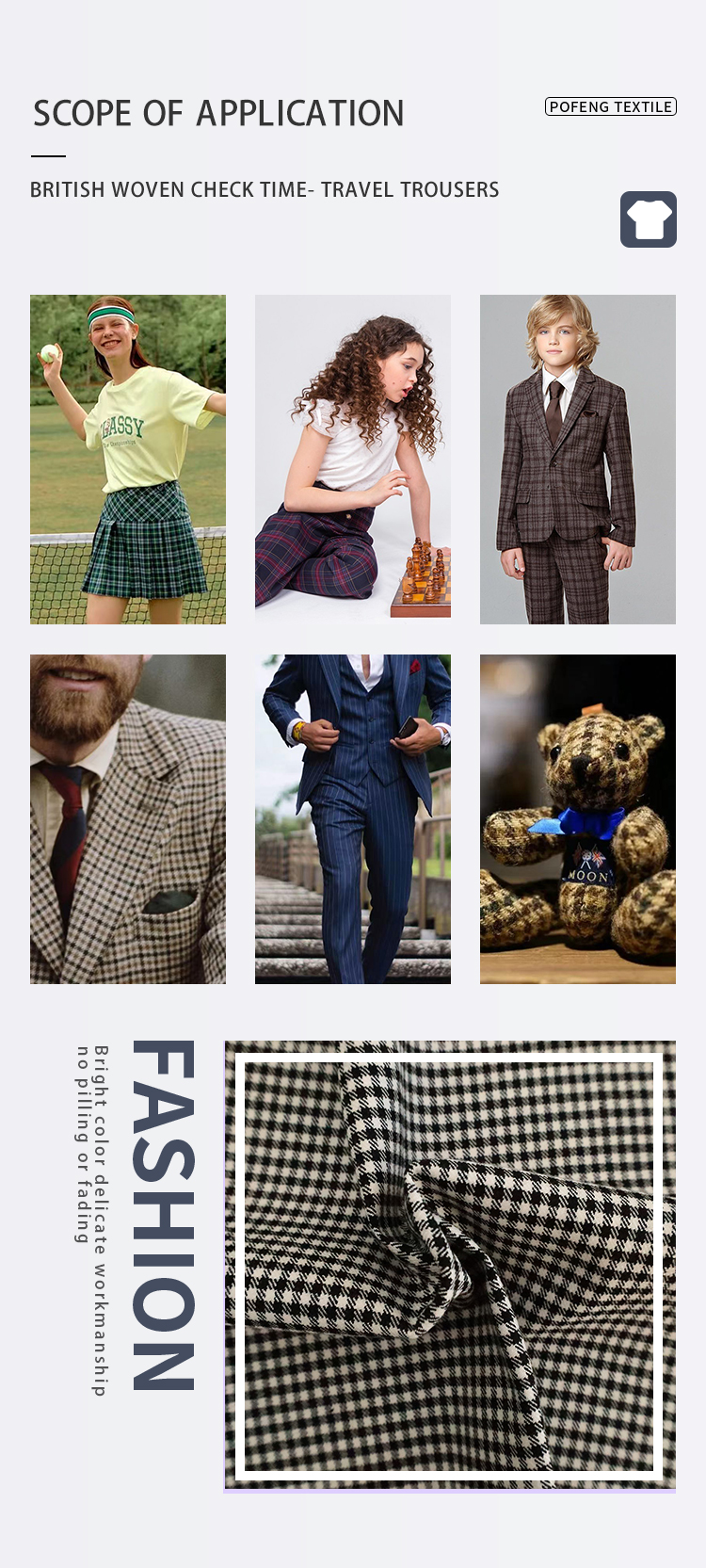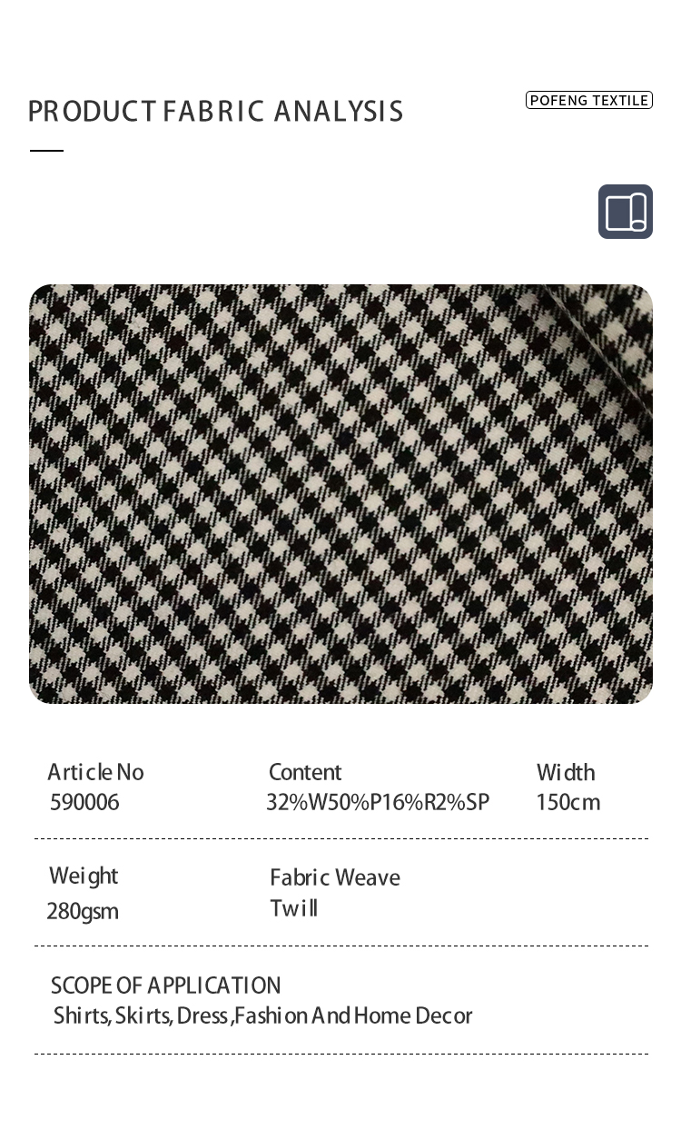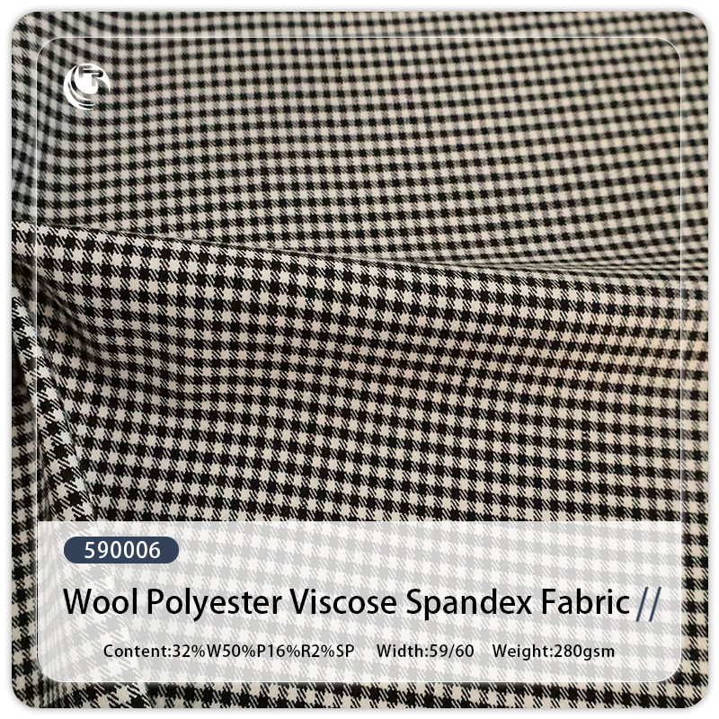 32% Wool 50% Polyester 16% Rayon 2% Spandex Yarn-Dyed Check Plaid Fabric for Suit Jackets Shirts Skirts Pants (280gsm)