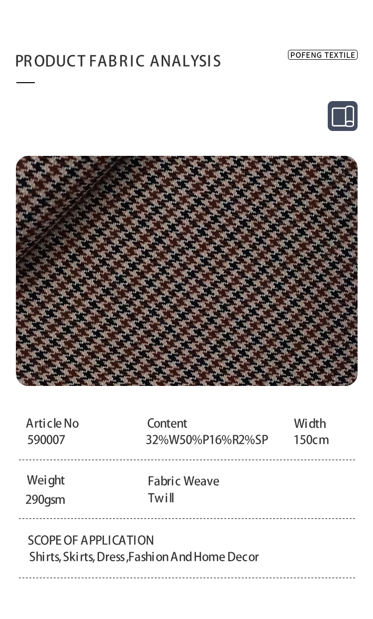 32% Wool 50% Polyester 16% Rayon 2% Spandex Yarn-Dyed Check Plaid Fabric for Suit Jackets Shirts Skirts Pants (290gsm)