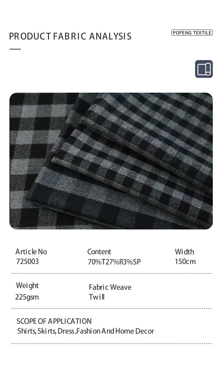 Autumn Winter TR Spandex Yarn-Dyed Woven Tartan Check Plaid Fabric Colorful Polyester Viscose Skirt Top Shirt Twill Lining Bag