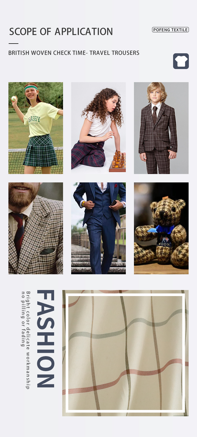 50% Cotton 50% Polyester Tartan Check Plaid Fabric 40S 125gsm Yarn Dyed Woven Soft Shirt Dress Pants for Home Textile Lining