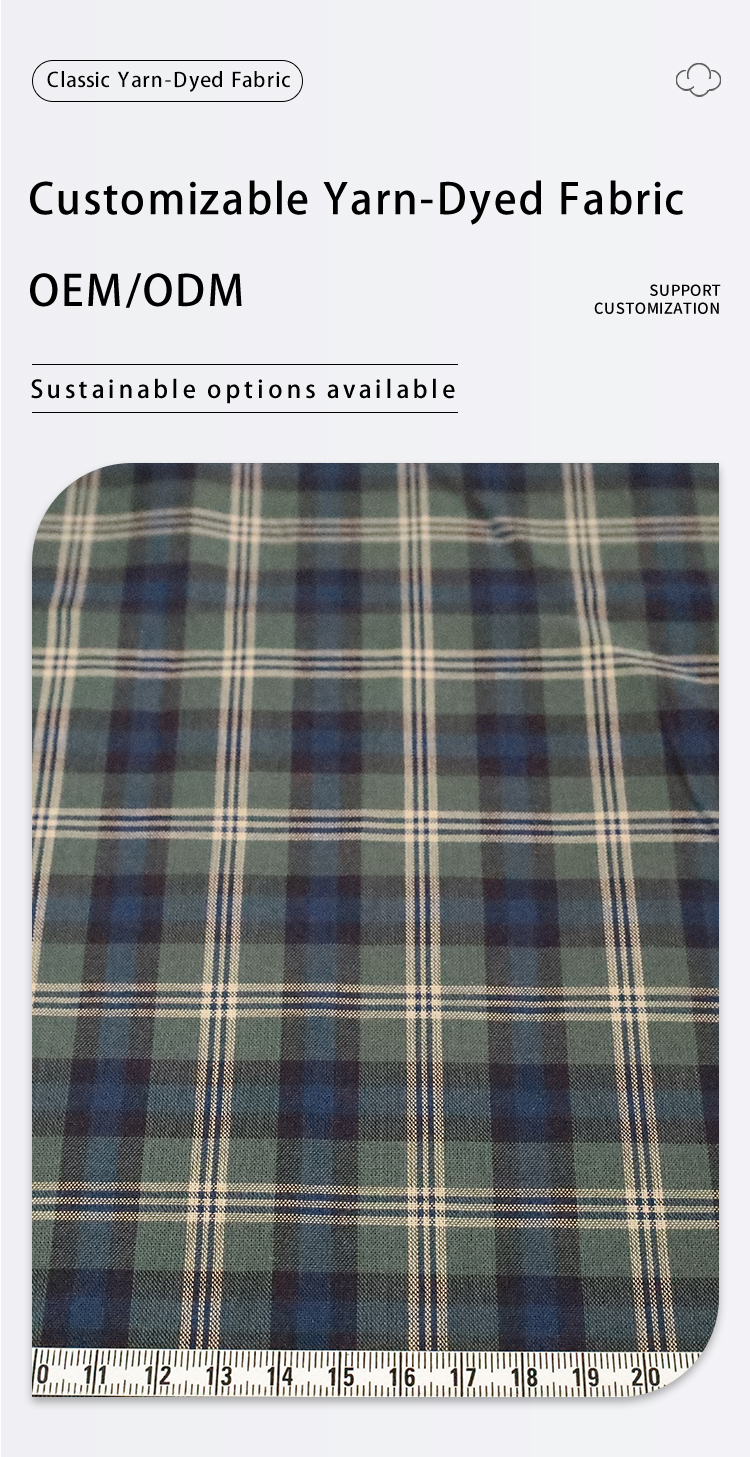 Cotton Yarn-Dyed 100gsm Green Tartan Check Plaid Fabric for Boys Girls Children’s Clothing Men’s Women’s Shirts Dress Pants