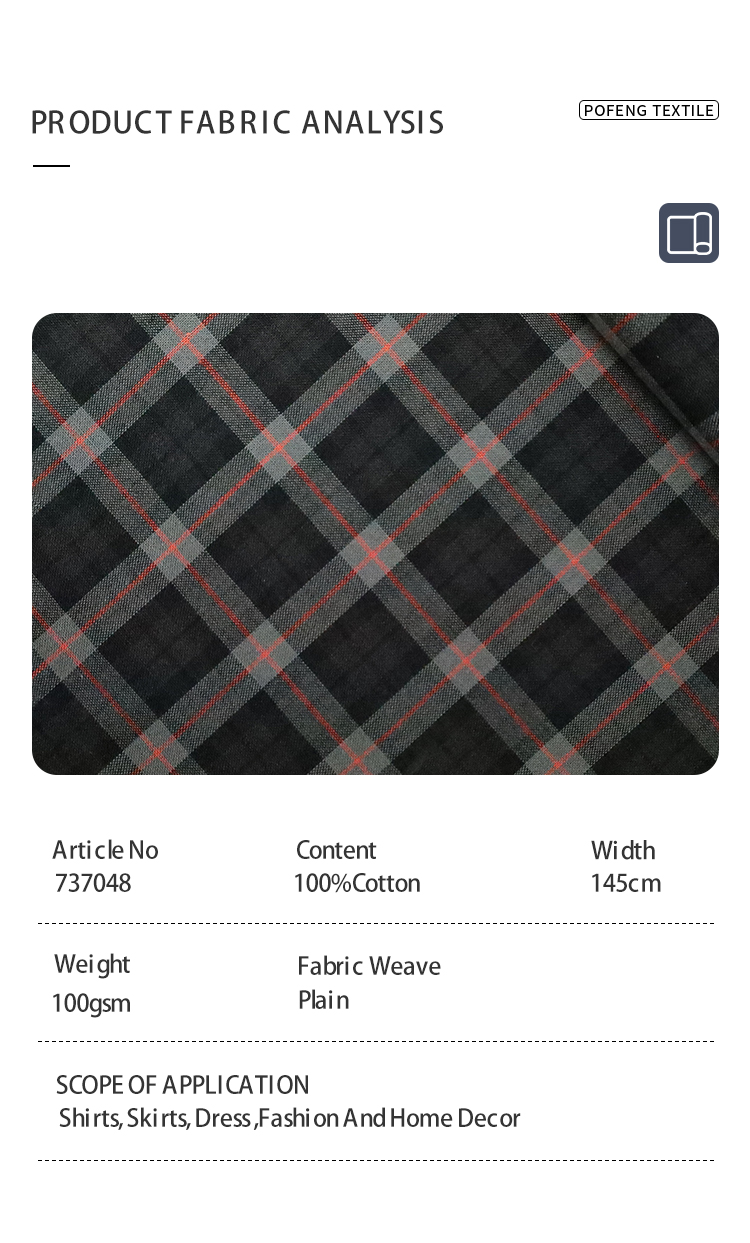 Cotton Yarn-Dyed 100gsm Green Tartan Check Plaid Fabric for Boys Girls Children’s Clothing Men’s Women’s Shirts Dress Pants