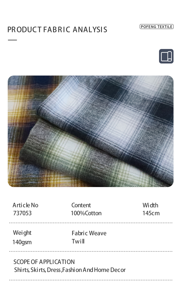 100% Cotton Stock Woven Check Plaid Fabric Breathable Yarn Dyed Dobby Versatile for Girls/Boys Shirt Dress Home Twill Plain
