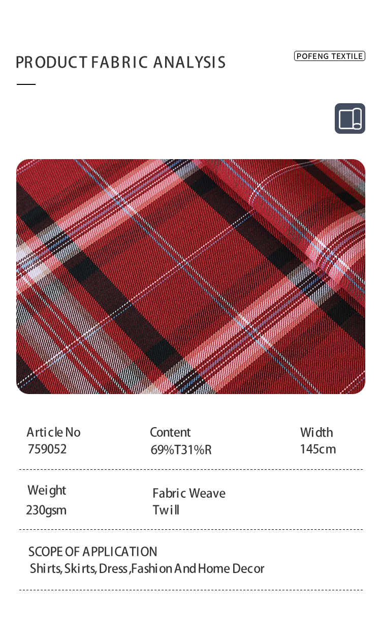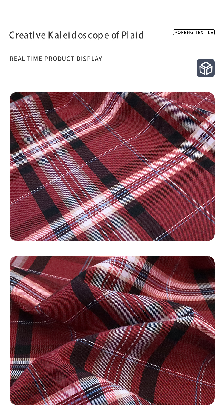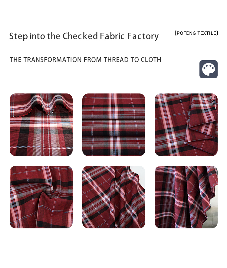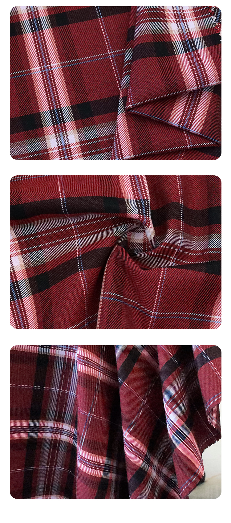 Twill Polyester Viscose Checkered Pattern Fabric Hot Sale OEM Ordinary Soft Fashion Check Custom Fabric