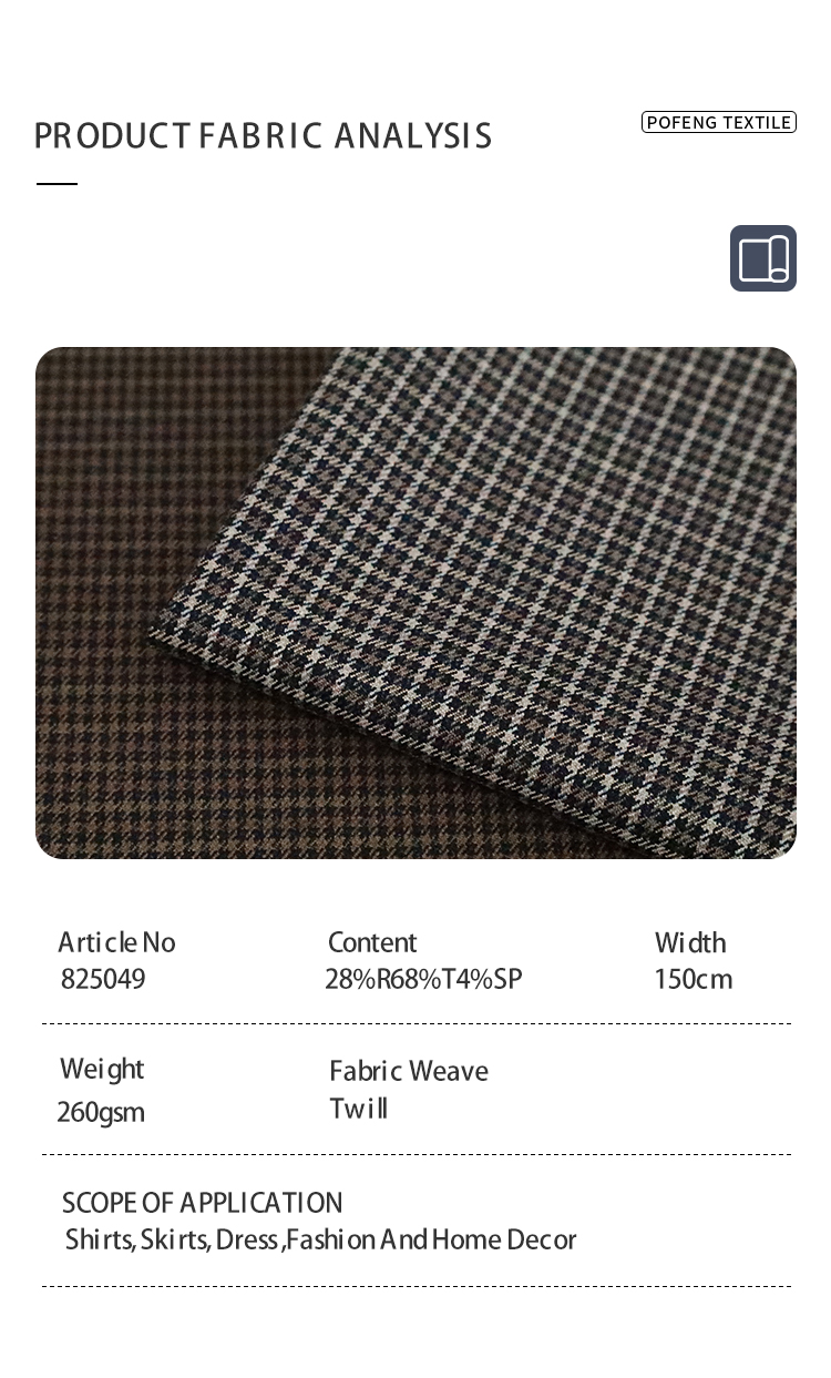 Polyester Viscose Spun Check Plaid Fabric for Men/Women/Juniors’ Clothing-Yarn Dyed Woven Techniques for Suit Jackets Lining