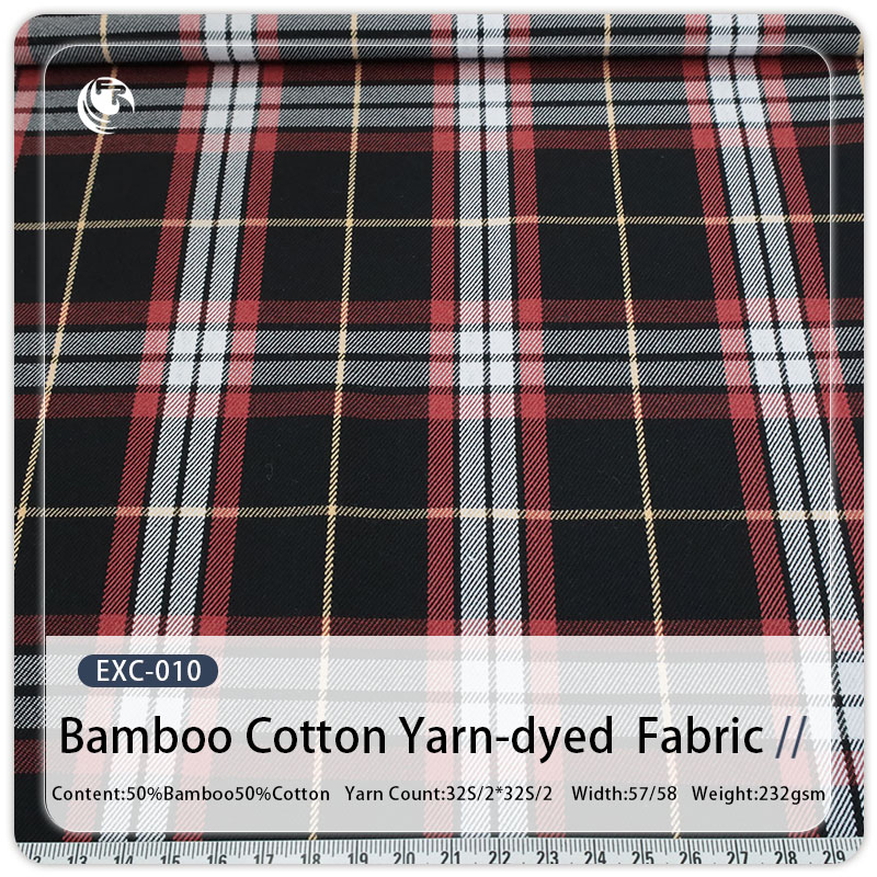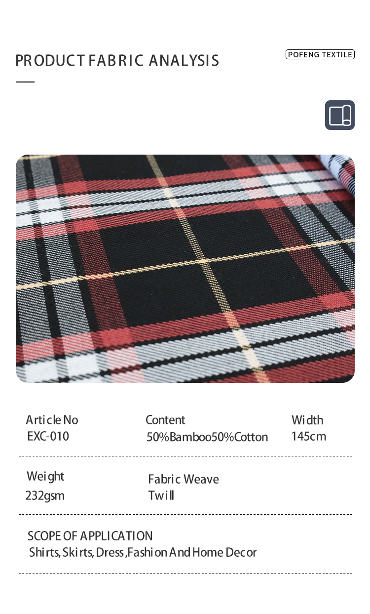 Factory Wholesale Yarn Dyed 50%BM50%C Check Fabric Bamboo Fiber Cotton Woven Plaid Fabric for Shirt Jacket Pants