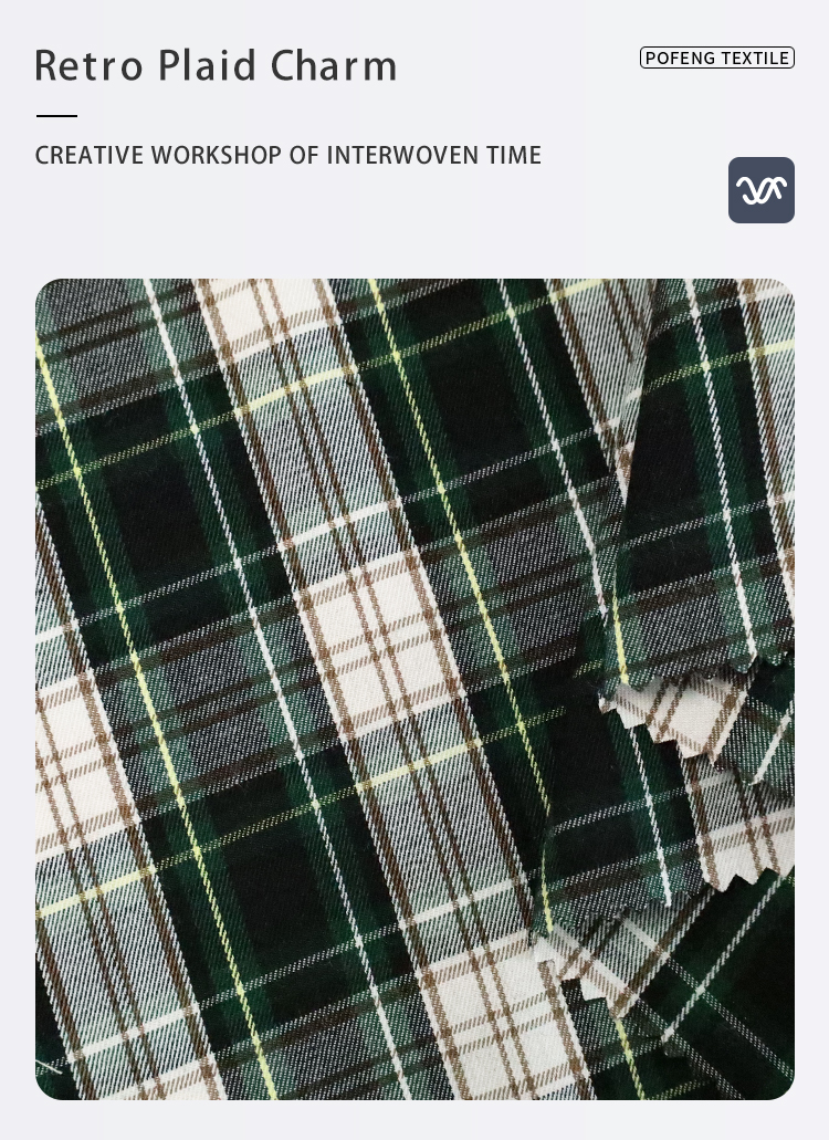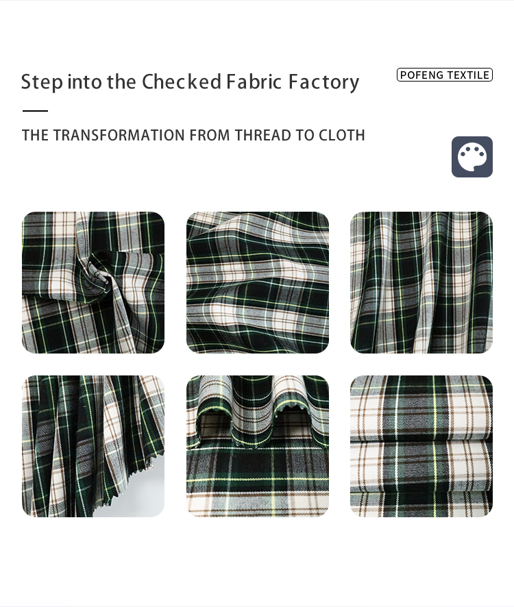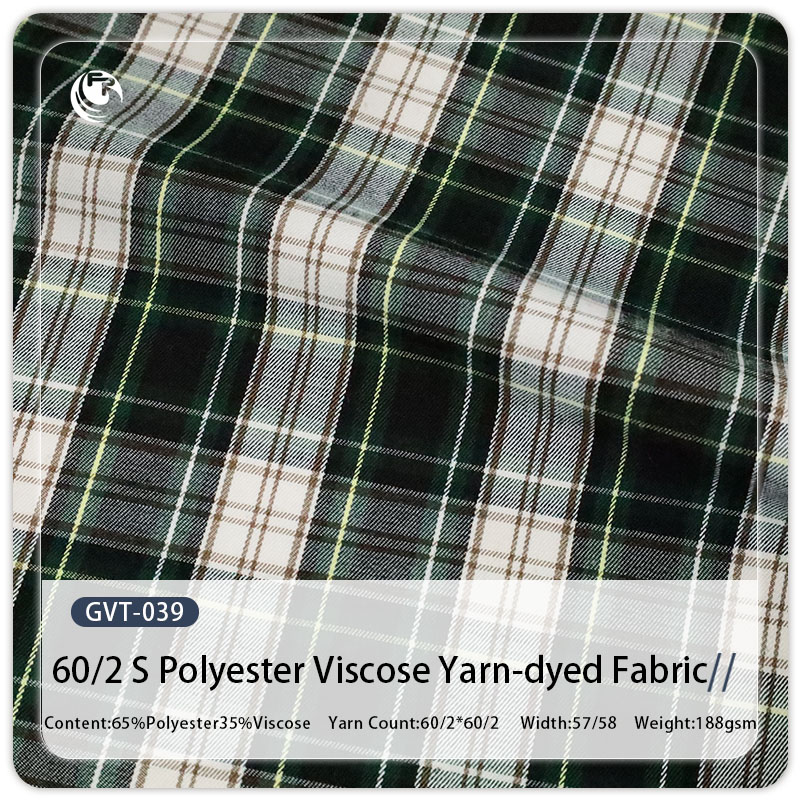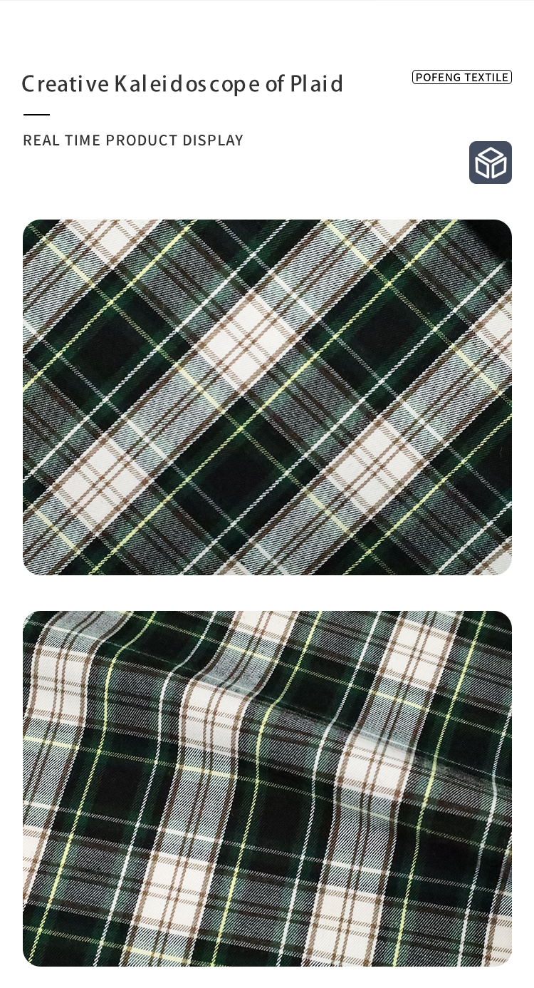 60/2 Polyester Viscose Yarn-Dyed Green Check Plaid Fabric for Men’s Women’s & Children’s Fashion Suit Coat & Shirt Clothing