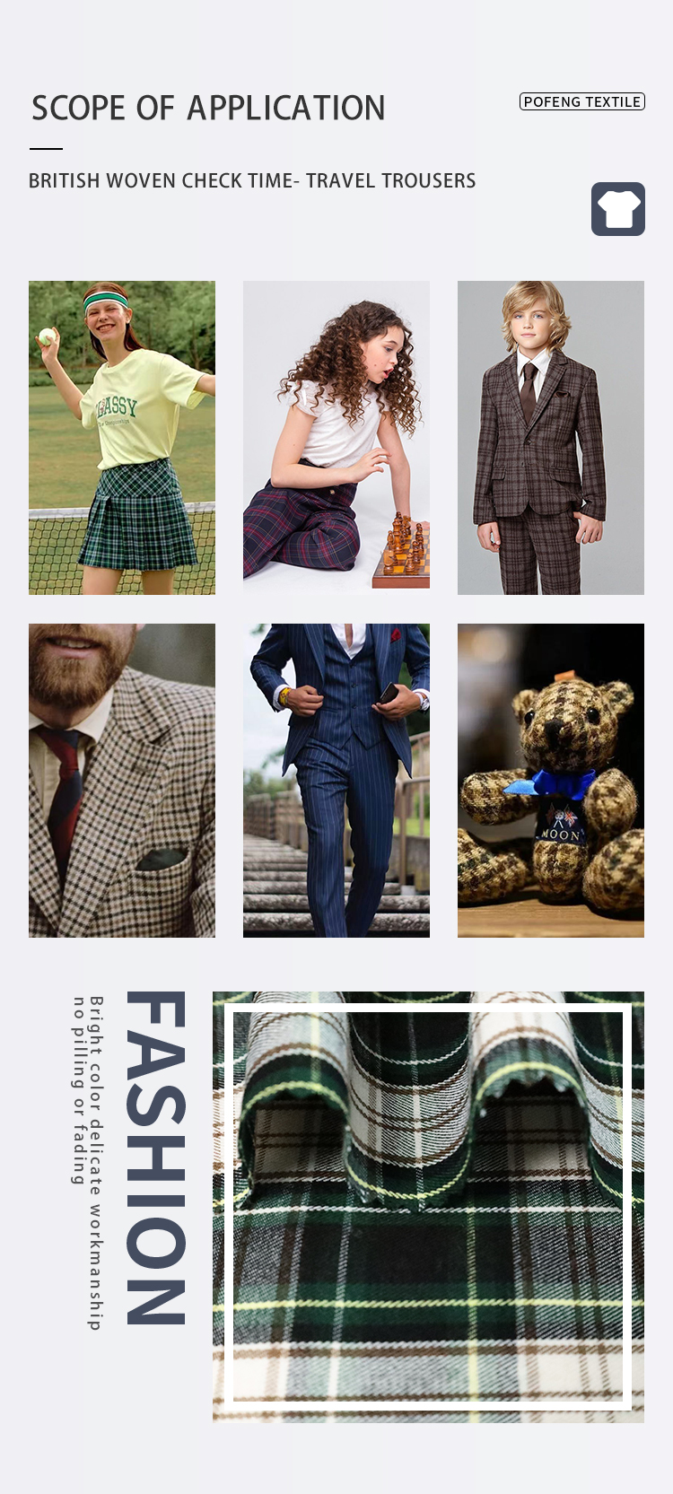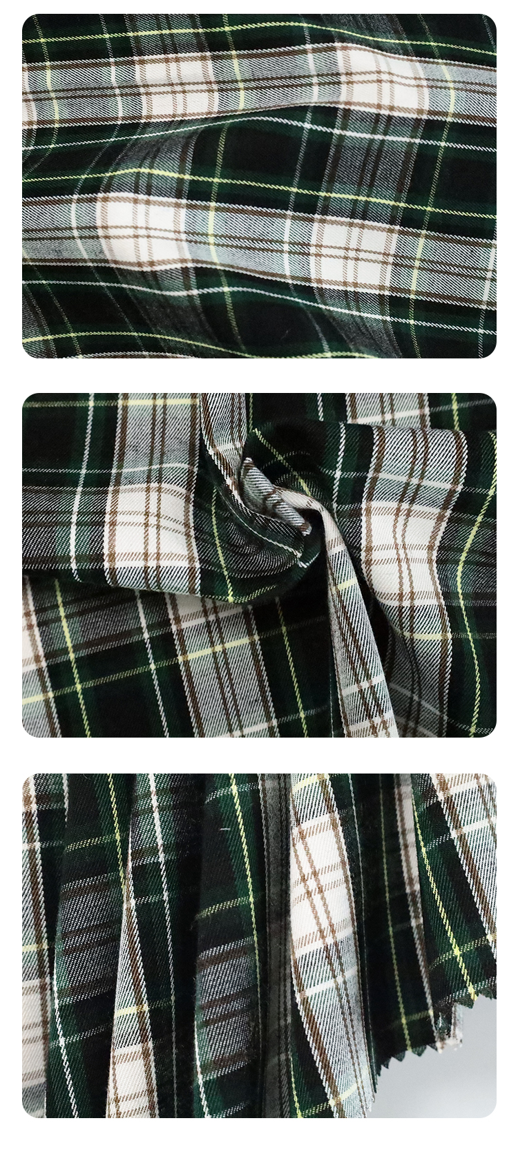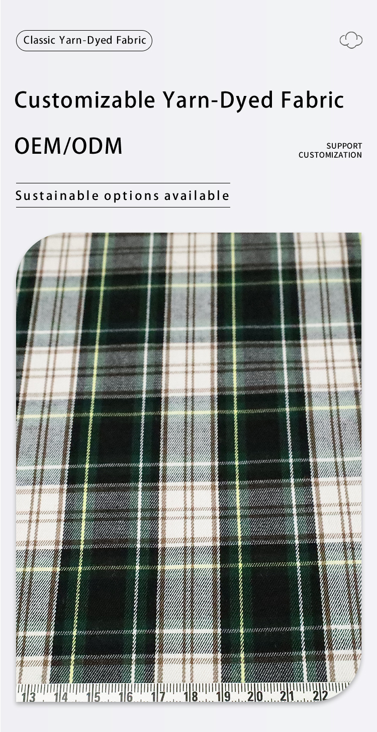 60/2 Polyester Viscose Yarn-Dyed Green Check Plaid Fabric for Men’s Women’s & Children’s Fashion Suit Coat & Shirt Clothing