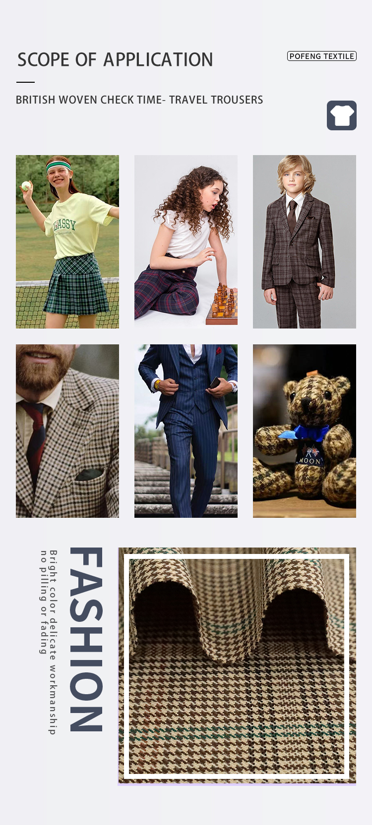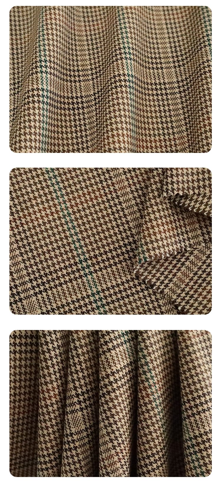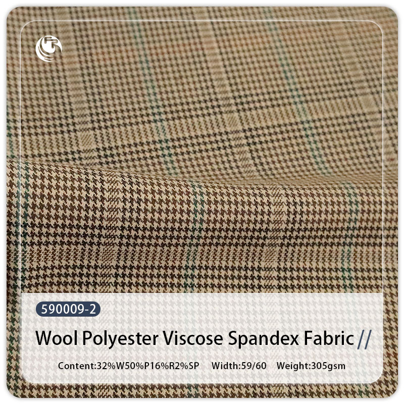 32% Wool 50% Polyester 16% Rayon 2% Spandex Yarn-Dyed Check Plaid Fabric for Suit Jackets Shirts Skirts Pants (305gsm)